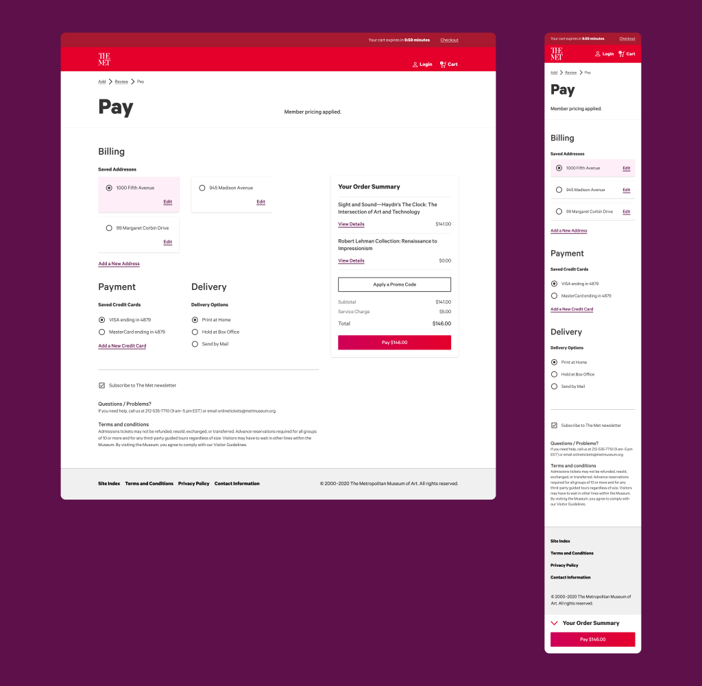Metropolitan Museum of Art MY ROLE Design systemUser interface designs A seamless user experience for The Met’s purchase path in order to effortlessly connect millions of patrons to thousands of years of art. View the live purchase path here.